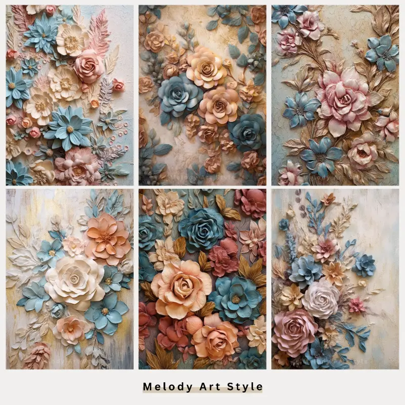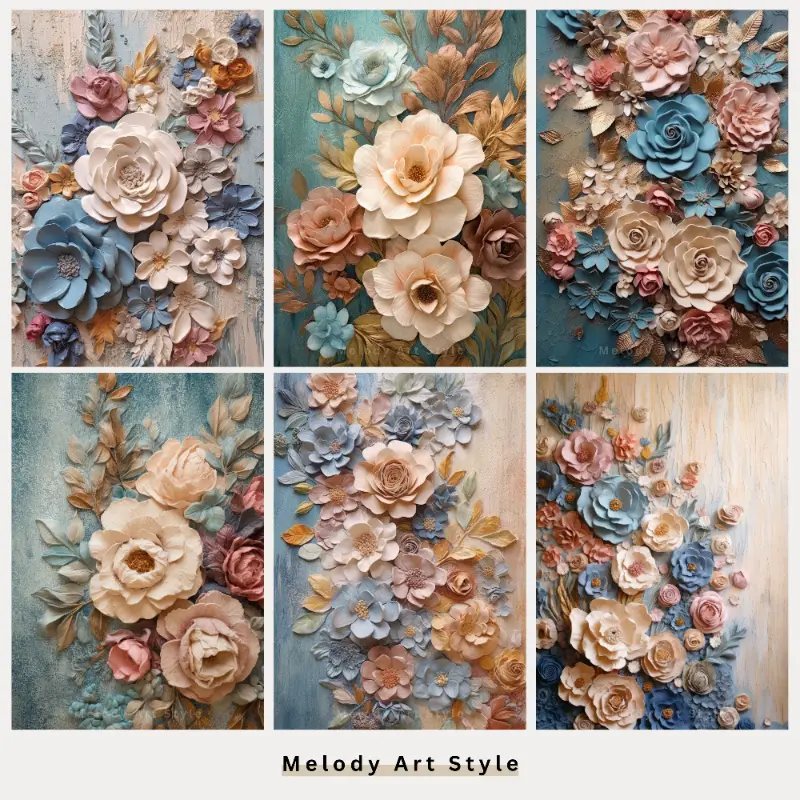 3D Flowers Printable Art, Spring Scrapbook, Pastel Flower Junk Journal Digital Paper, Beige Pink Blue Digital Download