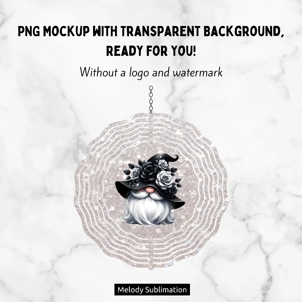 Black Gnome Wind Spinner PNG Silver Glitter Wind Spinner Sublimation Design Cute WindSpinners For Outdoors | Digital Download W6