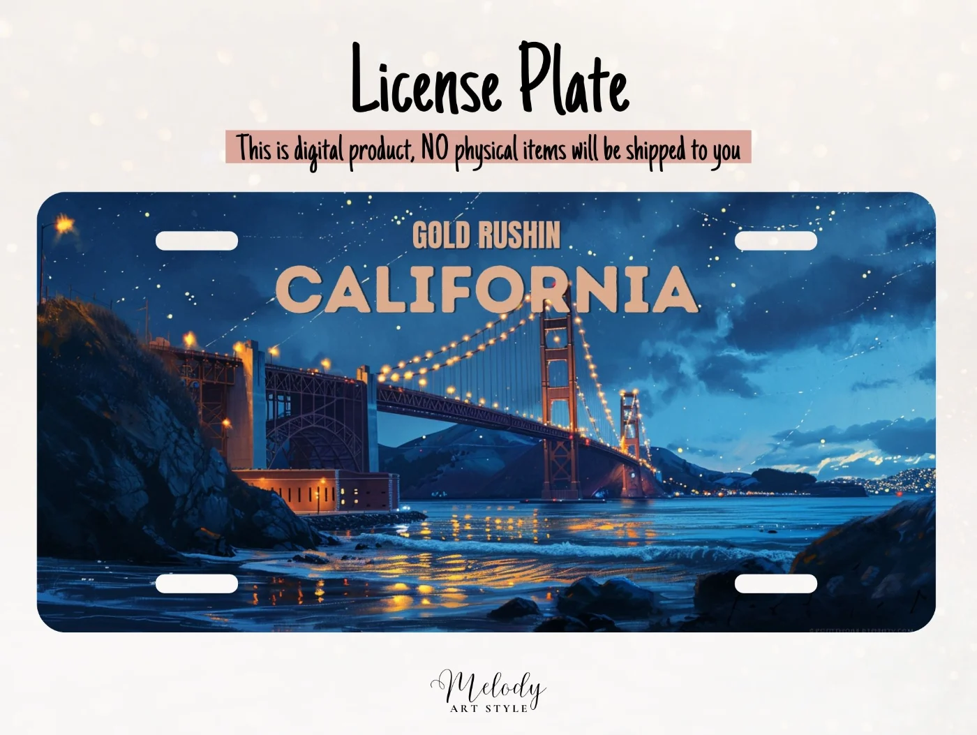 California License Plate PNG Sublimation Design 12 by 6 Inch, USA Car License Plate, Digital Download | Free Gift Matching Car Coaster L5