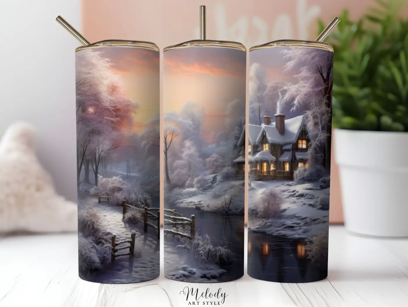 Cozy Winter Cabin in Snow Seamless Tumbler Wrap PNG Rustic Holiday 20 oz Tumbler Winter Wonderland Sublimation Design Digital Download T59