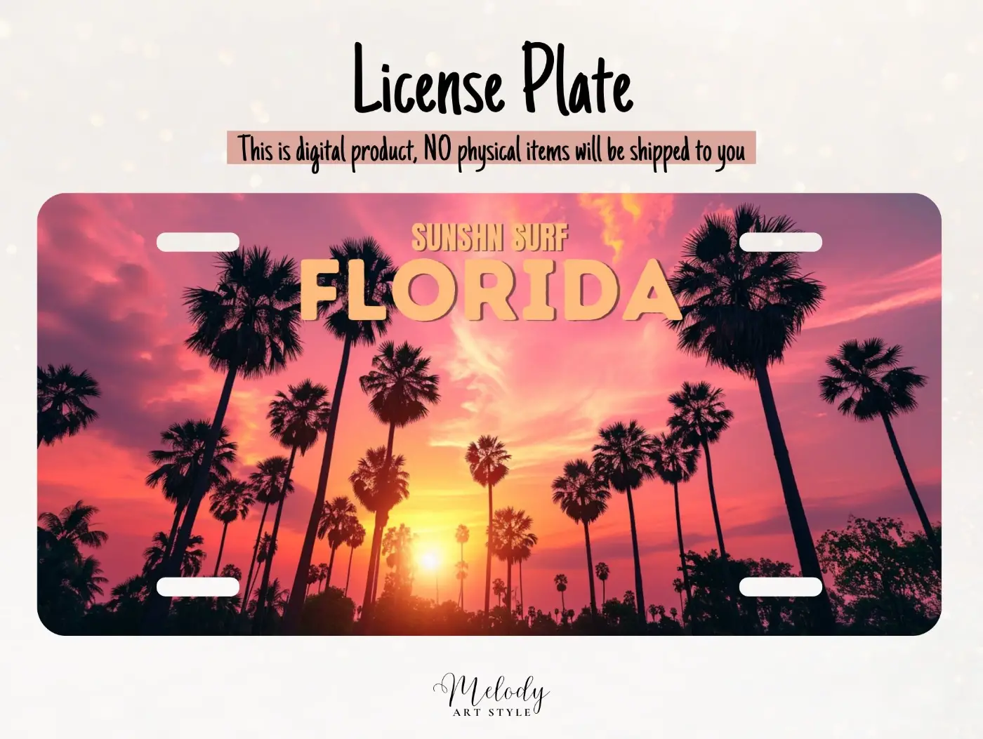 Florida License Plate PNG Sublimation Design 12 by 6 Inch, USA Car License Plate, Digital Download | Free Gift Matching Car Coaster L9