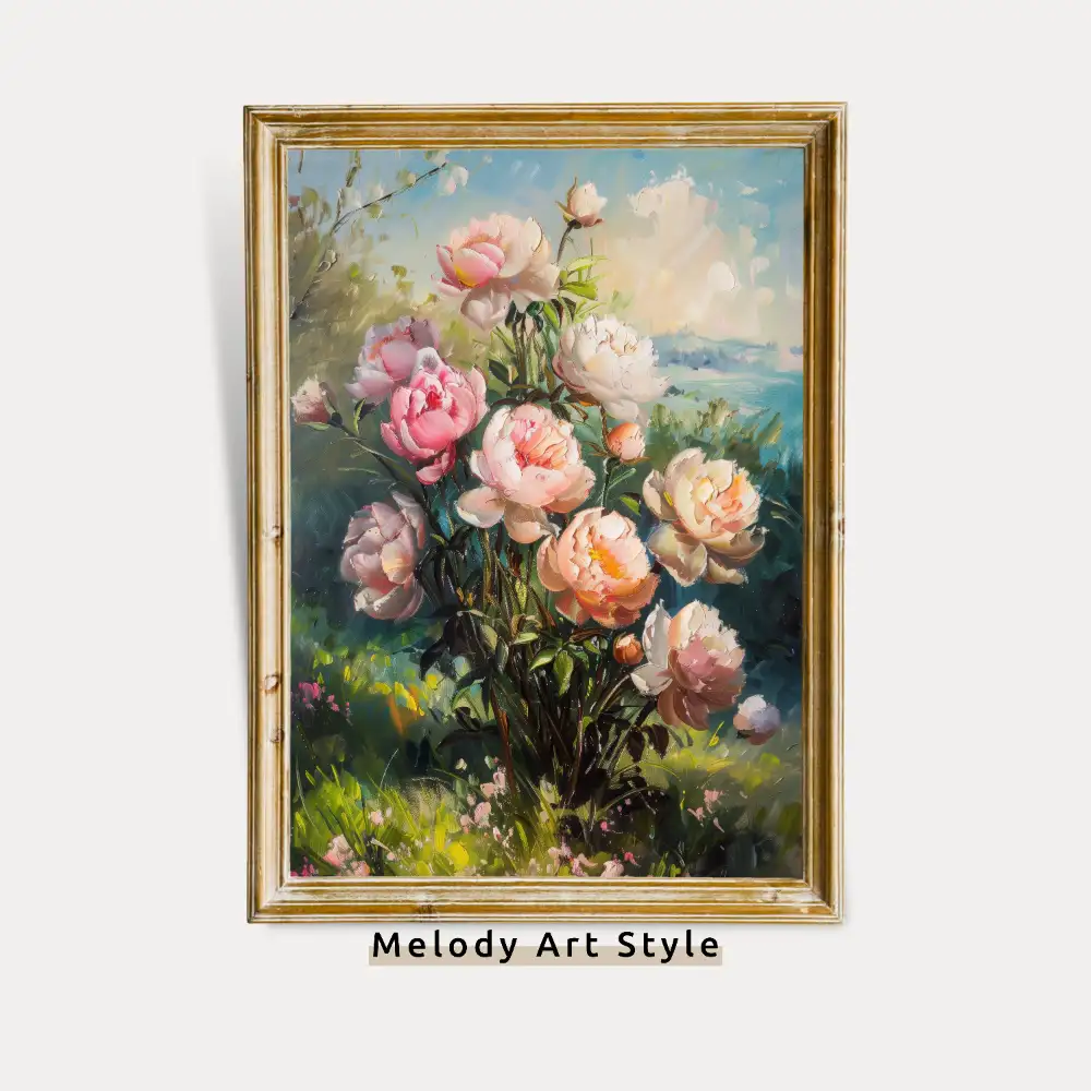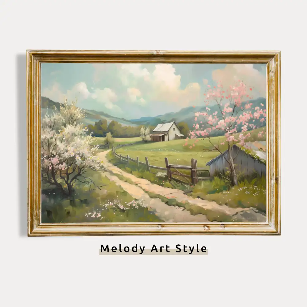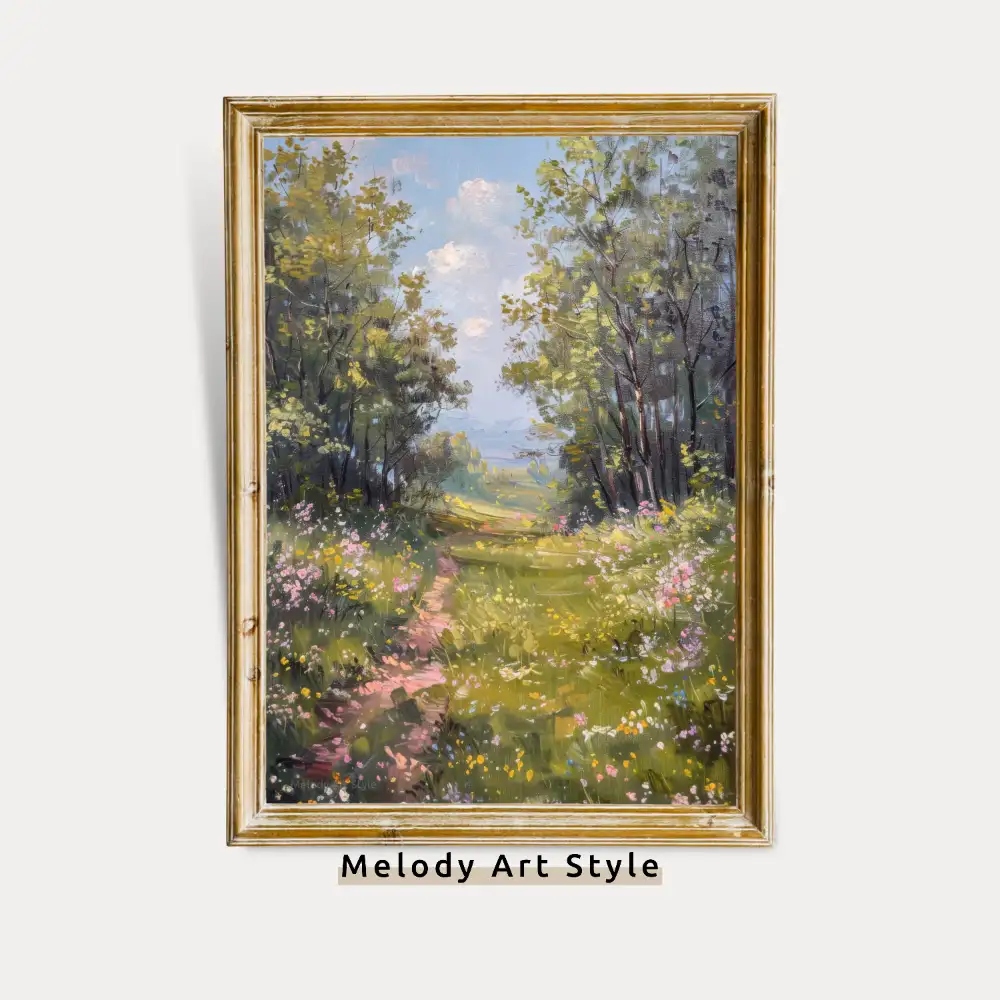 Flower Bridge Landscape Vintage Painting Blossoming Spring Garden Poster Pastel Nature Wall Art Vibrant Printable Digital Download P96