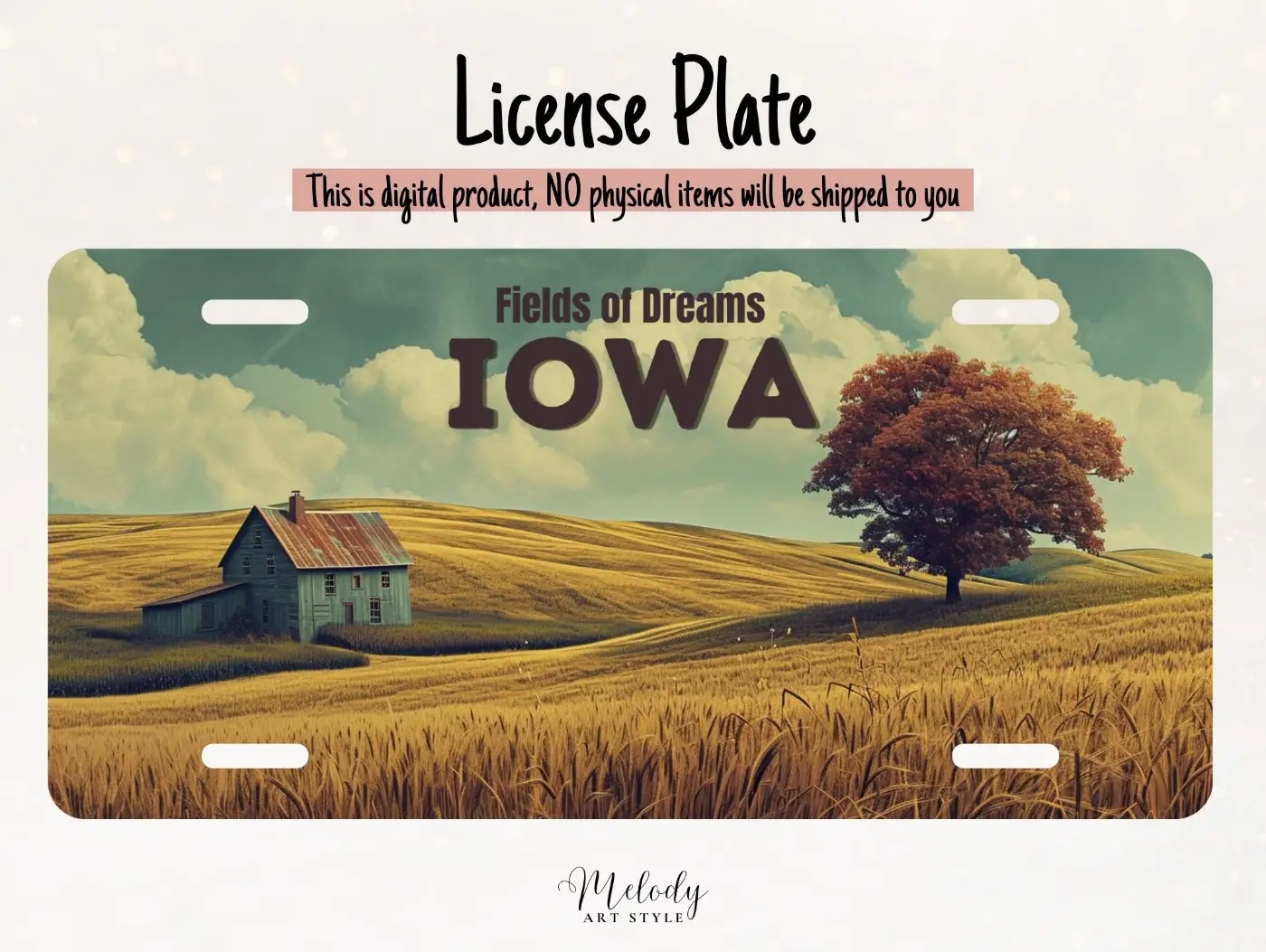 Iowa License Plate PNG Sublimation Design 12 by 6 Inch, Retro USA Car License Plate, Digital Download | Free Gift Matching Car Coaster L15