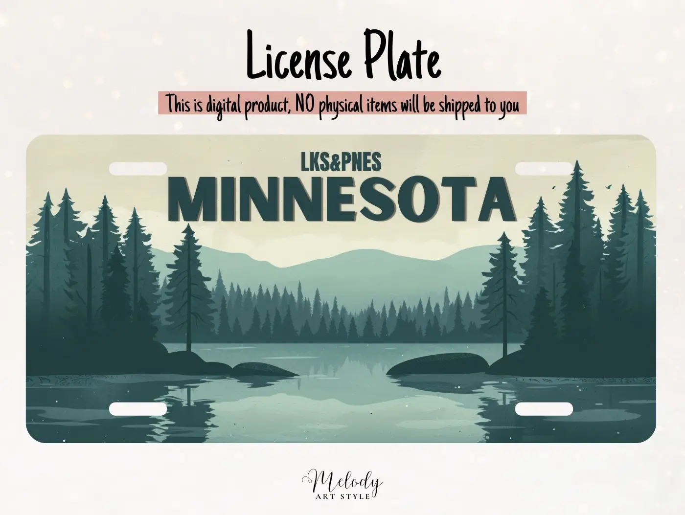 Minnesota License Plate PNG Sublimation Design 12 by 6 Inch, Retro USA Car License Plate, Digital Download | Free Gift Matching Car Coaster L23