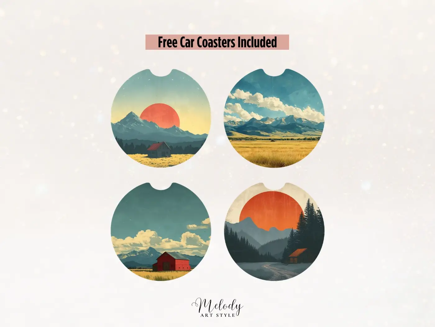 you receive as a gift 4 car coaster designs (3 inch/7.62 cm each one, 300DPI)