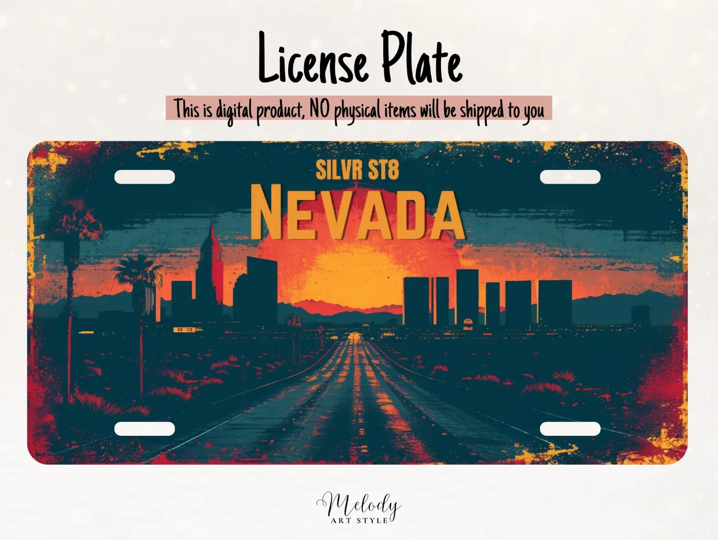 Nevada License Plate PNG Sublimation Design 12 by 6 Inch, Retro USA Car License Plate, Digital Download | Free Gift Matching Car Coaster L28