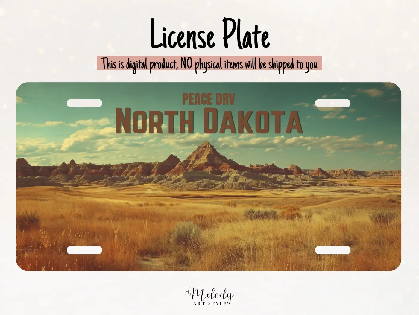 North Dakota License Plate PNG Sublimation Design 12 by 6 Inch, USA Car License Plate, Digital Download | Free Gift Matching Car Coaster L34