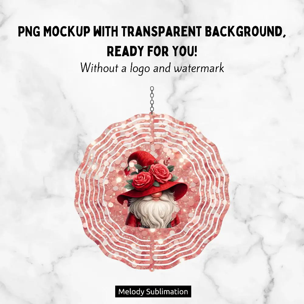 Red Gnome Wind Spinner PNG Glitter Wind Spinner Sublimation Design Cute WindSpinners For Outdoors | Digital Download W5