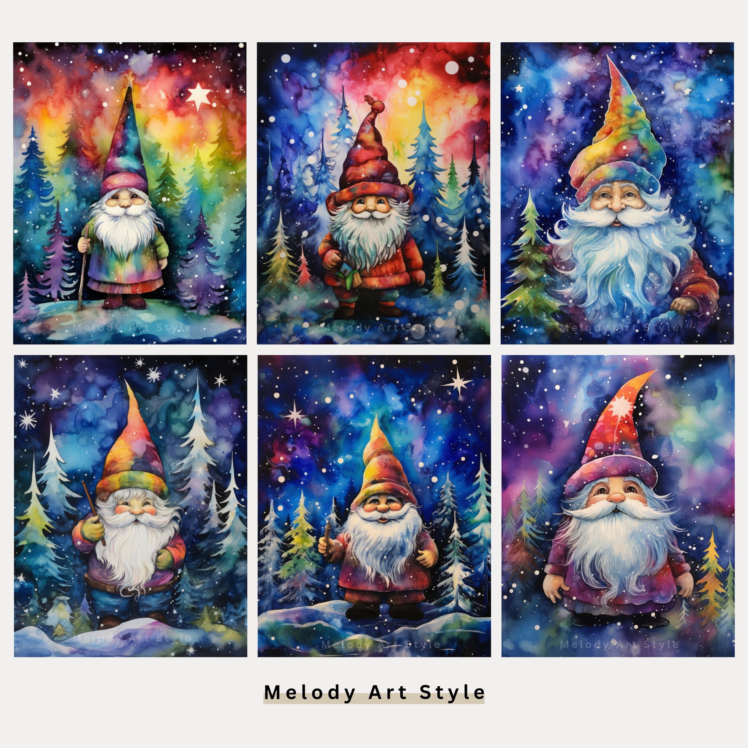 Watercolor Gnome Printable Art, Colorful Merry Christmas Print, Holiday Paper Digital Papers Set, Xmas Art, Digital Download D64